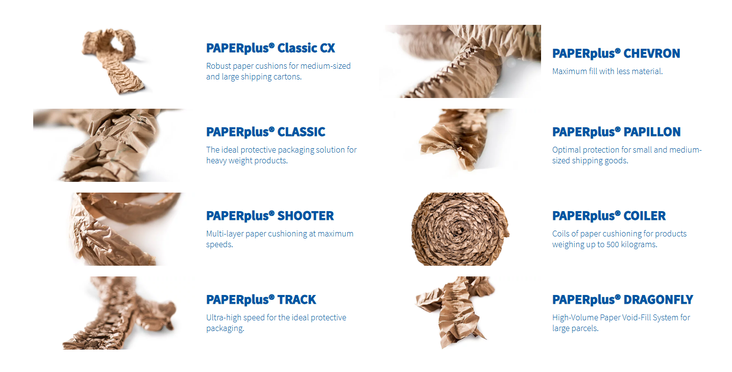 Đầy đủ từ đệm giấy dạng ống, quấn cuộn, đến giải pháp khối lượng lớn – ứng dụng đa dạng cho từng nhu cầu đóng gói khác nhau . |