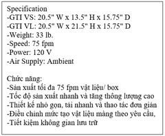 -Máy thường sẽ được sử dụng như một thiết bị "độc lập", nhưng nó cũng có thể được sử dụng kết hợp với hệ thống tương thích khác để phục vụ cho nhiều trạm đóng gói